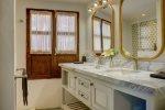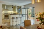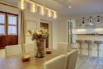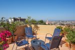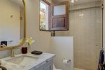 It has 2 bedrooms with a full bathrooms - both have walk in showers. There is one with a king size bed and the other with two double beds, a TV room, a fully equipped kitchen, a living/dining room, a garage for one medium car, a laundry area, a half bathroom and a very large terrace. with spectacular views, where there is a grill and table area, furniture for sunbathing and a fire pit. There is purified water throughout the house.