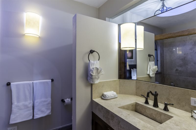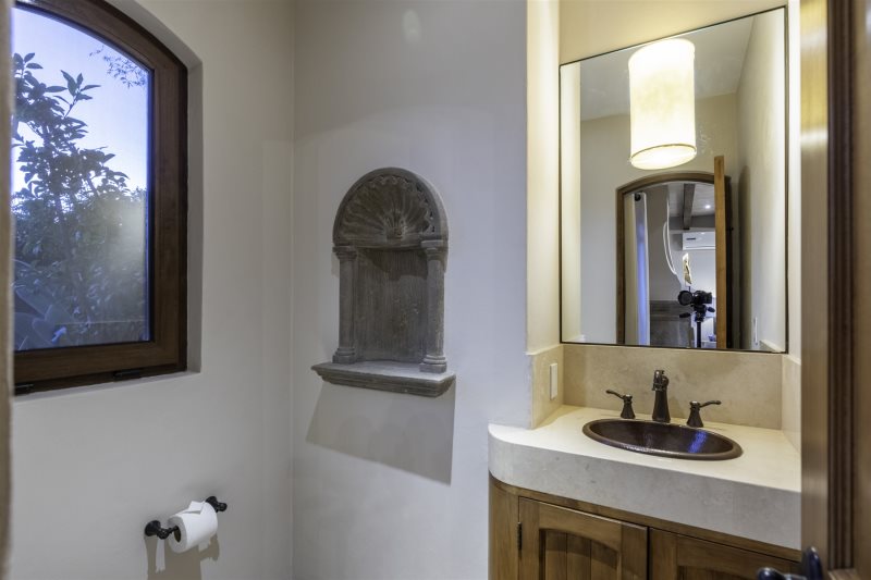 This area of the property also houses a private casita (guest house) with two additional bedrooms. The principal suite Bedroom #4 is on the first floor of the casita includes a king bed, an ensuite bathroom, a private patio, and a minibar. A half-bath is conveniently located off the patio to serve as a pool bathroom. And finally Bedroom #5 is located on the third floor of the casita; while it is the most intimate room, it offers spectacular views and includes a king bed with an ensuite bathroom.