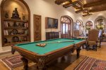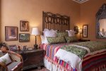 There are 6 bedrooms and 8 baths. All have king size beds (some converting to twins), lock boxes, and four have their own patios. Each bathroom has a tub / shower and double sinks, except the "Cactus" room which has only one sink. There are two powder rooms located around the house for your convenience.