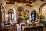 There are 2 large TV areas with satellite, and an extensive reading library, fax machine, and internet access is available. There are 11 fireplaces, a hot tub hidden in the rocks, and a central sound system.